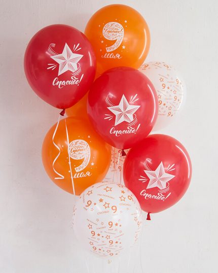 Кроме того, шары на 9 мая могут быть украшены флагами и символами Великой Победы. Это могут быть изображения красных звезд, герба СССР, символа орла, пламени, фотографий военных героев и боевых действий.
