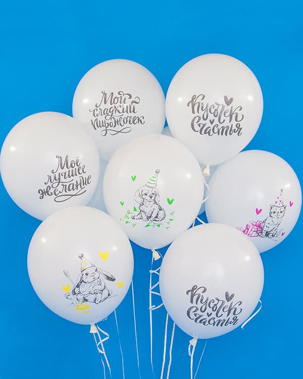 Воздушные шары из натурального латекса с шелкографическим рисунком тематических дизайнов станут идеальным украшением праздничного торжества, а букет из воздушных шаров поднимет настроение в любое время года.